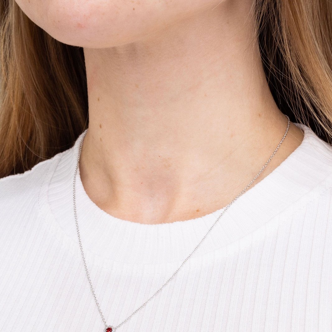 Mini Garnet & Diamond Halo Necklace