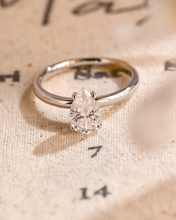 1.0-3.0 CT Pear CVD Diamond Solitaire Engagement Ring