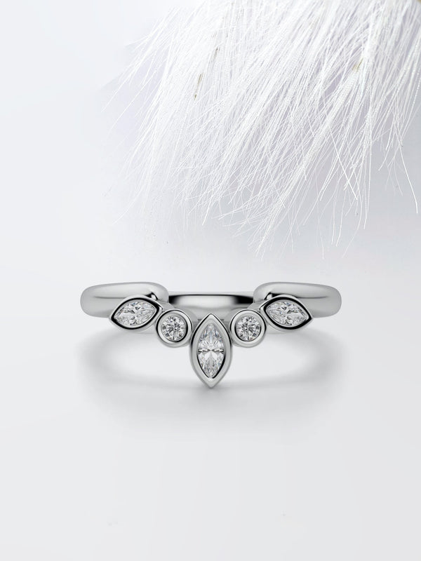 Marquise & Round Cut Moissanite Curved Diamond Wedding Band