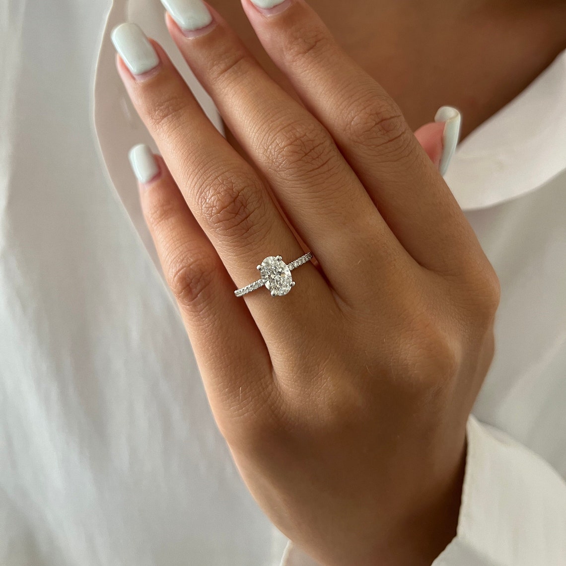 1.0-3.0 CT Oval CVD Diamond Pave Setting Engagement Ring