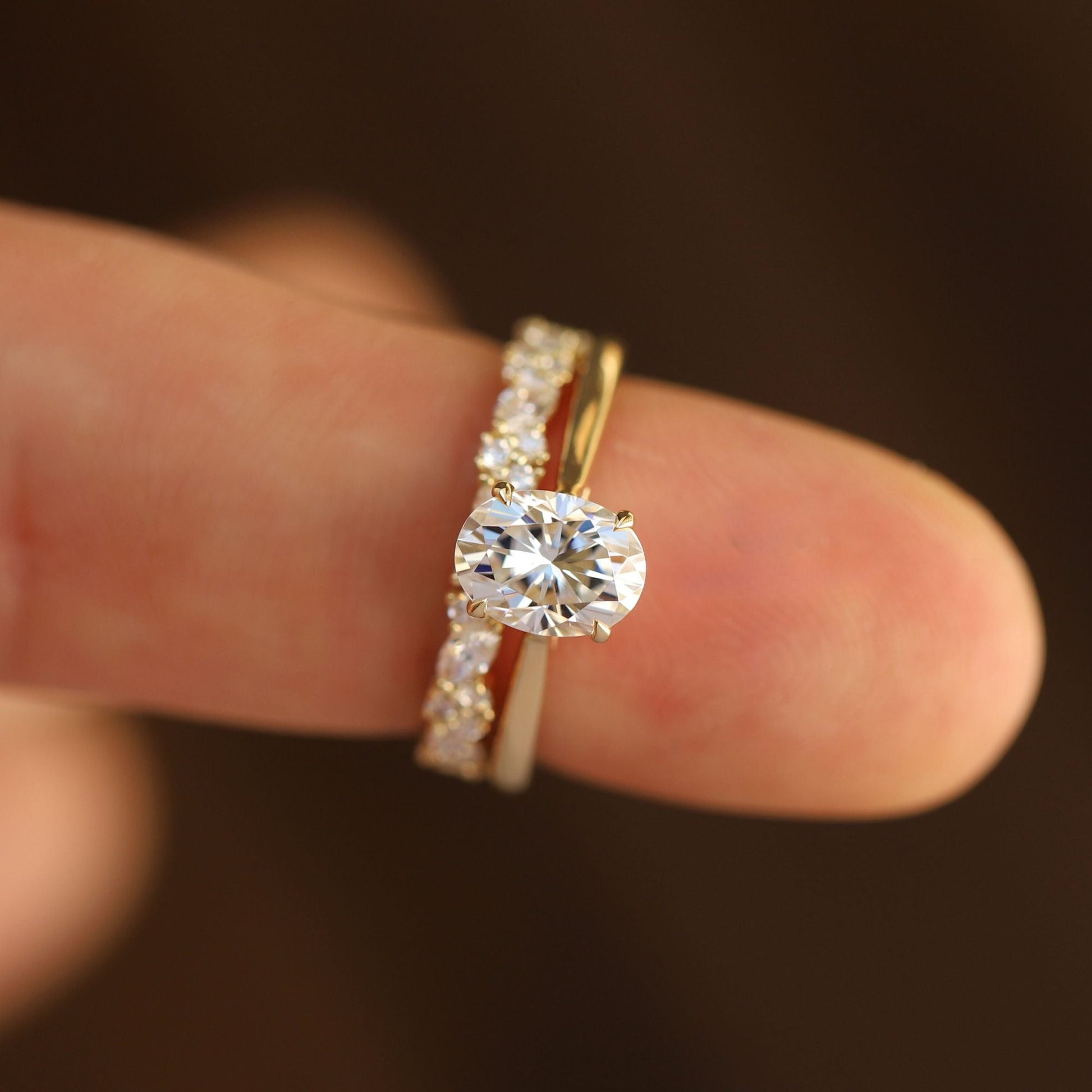 Oval Moissanite Solitaire Engagement Ring Set for Women