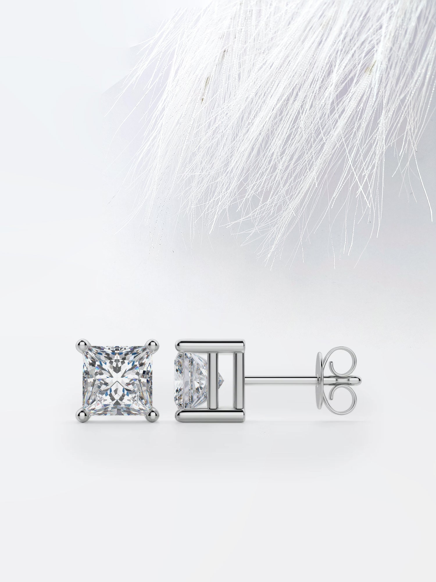 Princess Cut Moissanite Diamond Stud Earrings in 10K White Gold