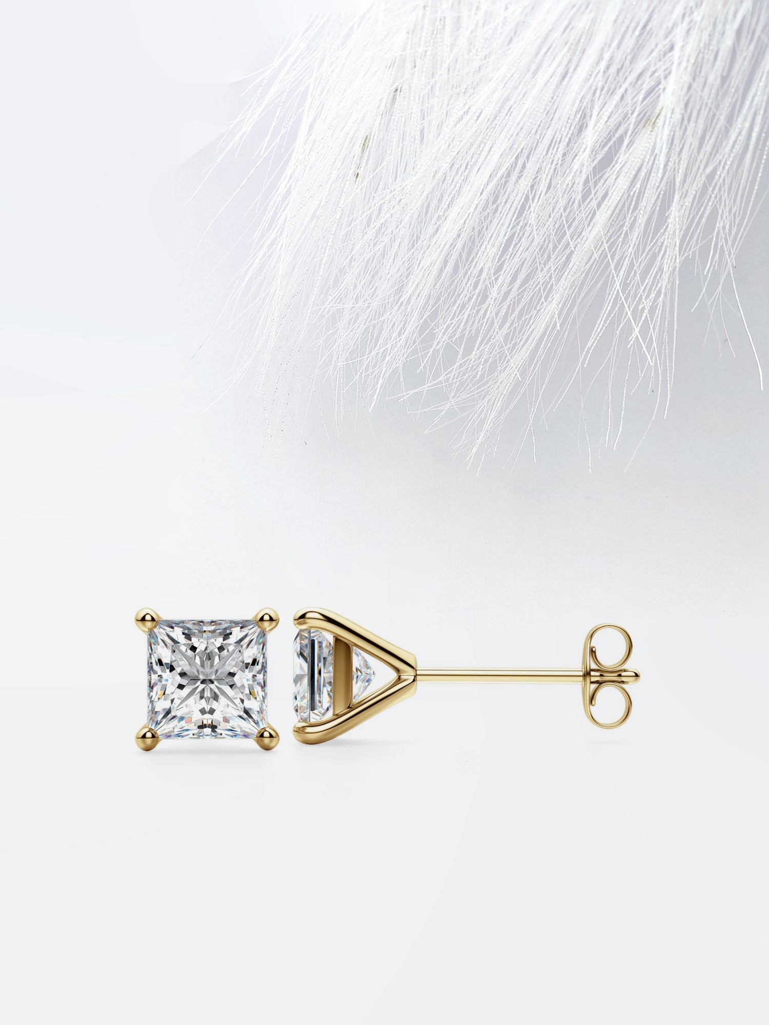 Princess Cut Moissanite Stud Diamond Earrings in 10K Gold
