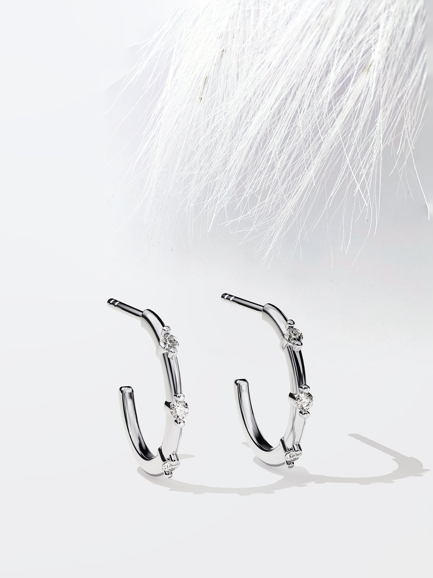 Round Cut Dainty Moissanite Huggies Diamond Earrings
