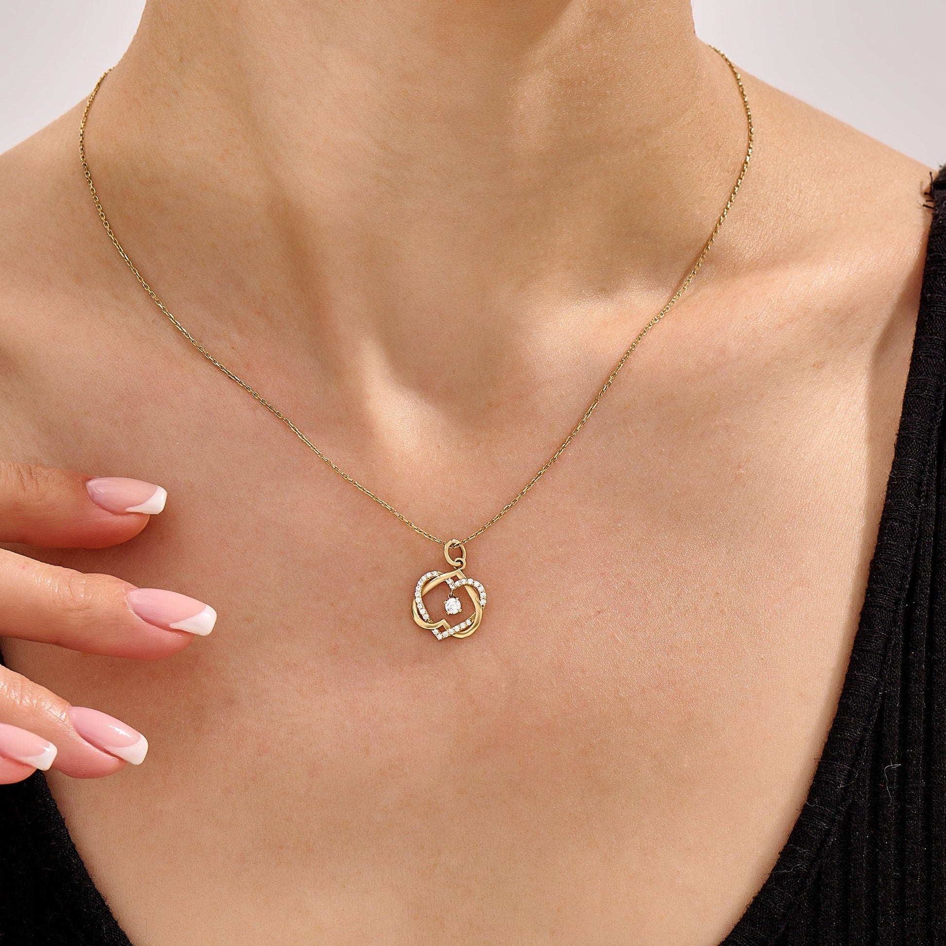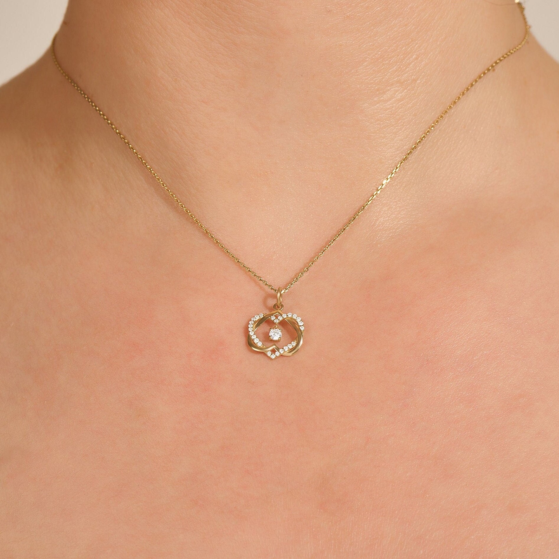 Round Cut Diamond Double Heart Intertwined Necklace for Her