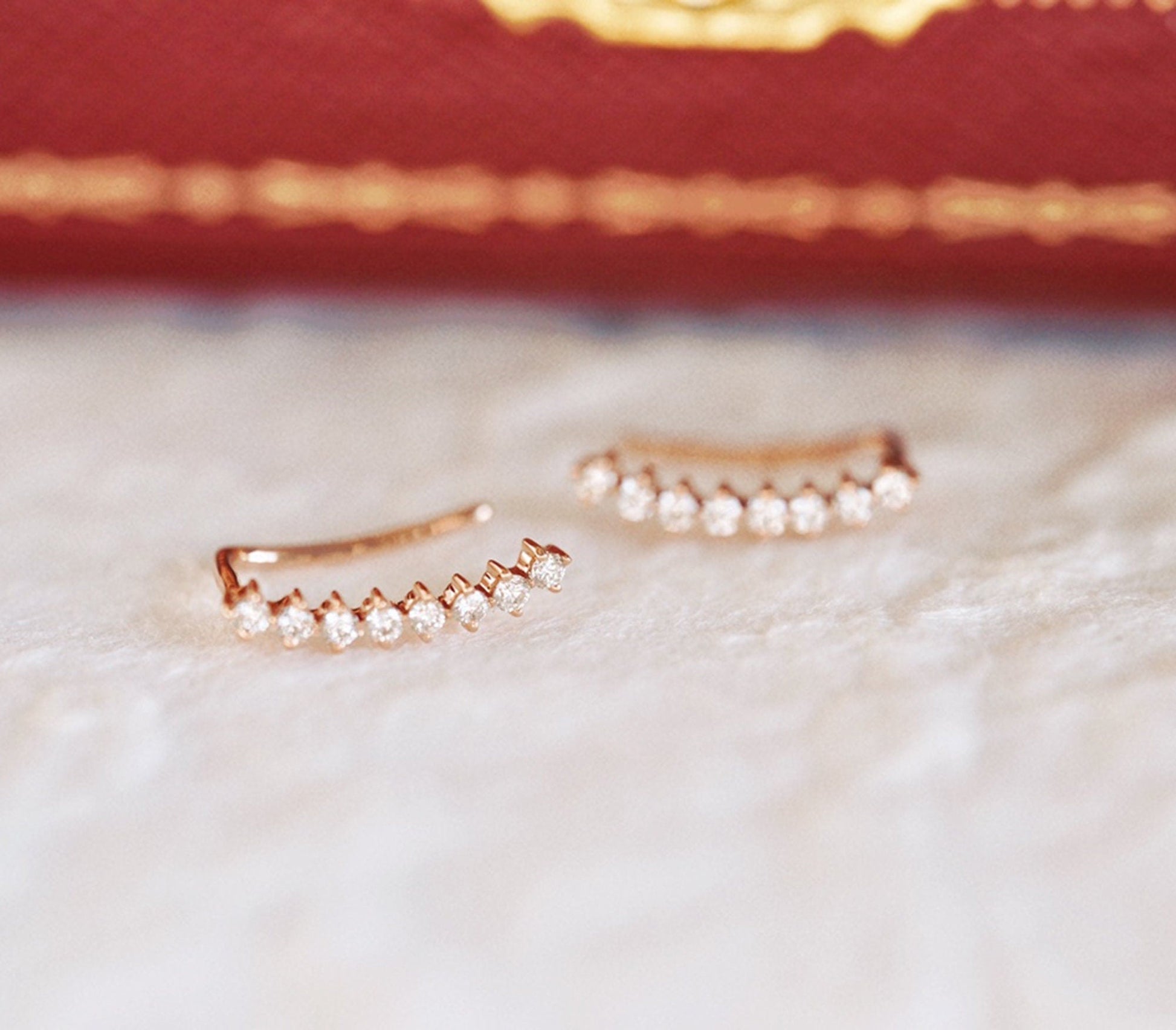 ✥ Add a touch of modern elegance to your daily style with our Round Cut Diamond Ear Climber Earrings. These earrings are designed to gracefully crawl up the earlobe, adorned with sparkling round cut diamonds that catch the light with every movement. Crafted for durability and lasting brilliance, they are ideal for everyday wear, effortlessly transitioning from day to evening. Perfect for adding a subtle yet sophisticated sparkle to any outfit, these ear climbers are a versatile and stylish choice. A thoughtful gift symbolizing contemporary charm and elegance, sure to be treasured in any jewelry collection.