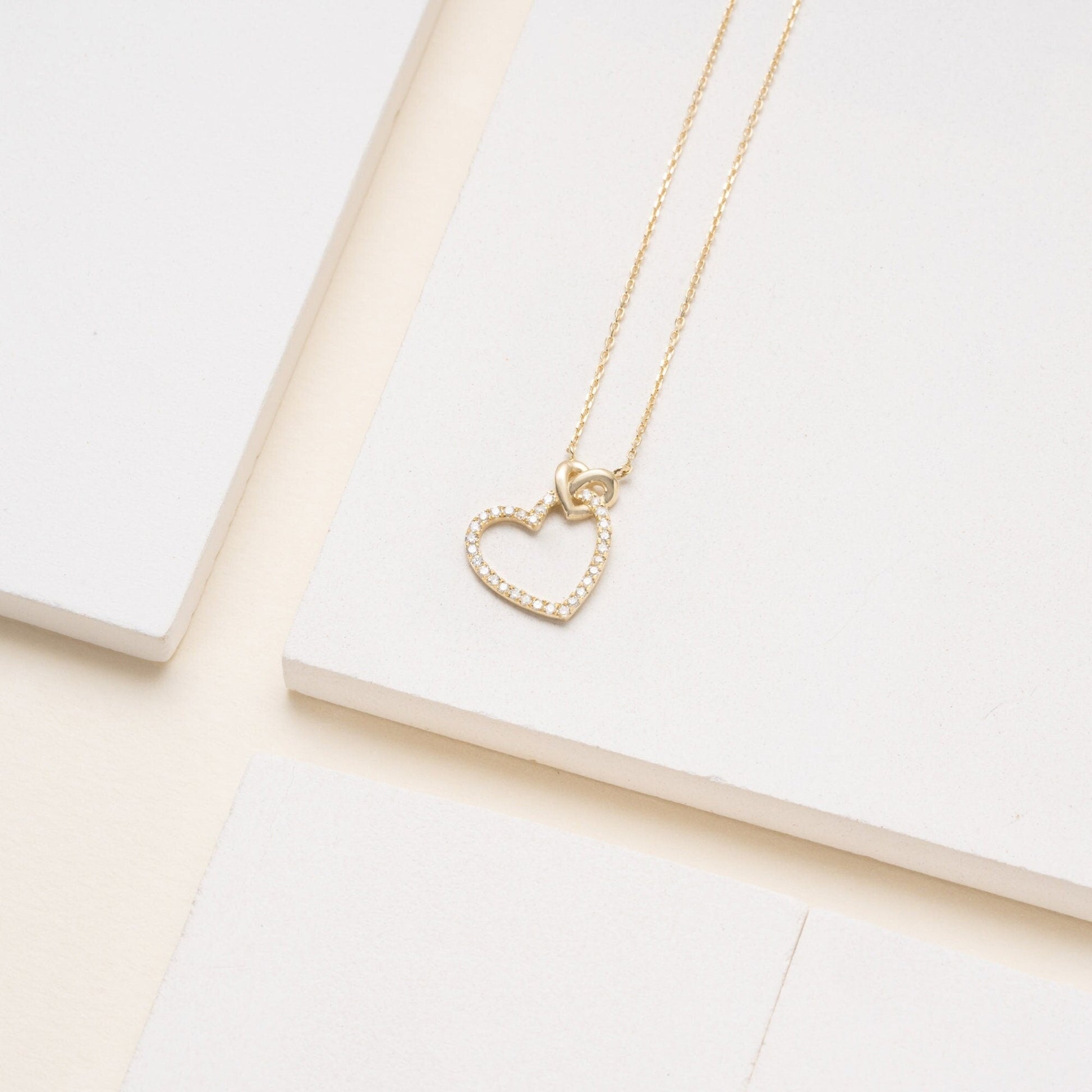 ✥ Surprise her with our Round Cut Diamond Heart Necklace. This stunning piece features a heart-shaped pendant adorned with sparkling round cut diamonds, symbolizing love and elegance. Perfect for any occasion, from daily wear to special events, this necklace adds a touch of romance and sophistication to her look. Crafted from premium materials for lasting beauty and durability, it makes an ideal gift for her, expressing timeless love and affection.