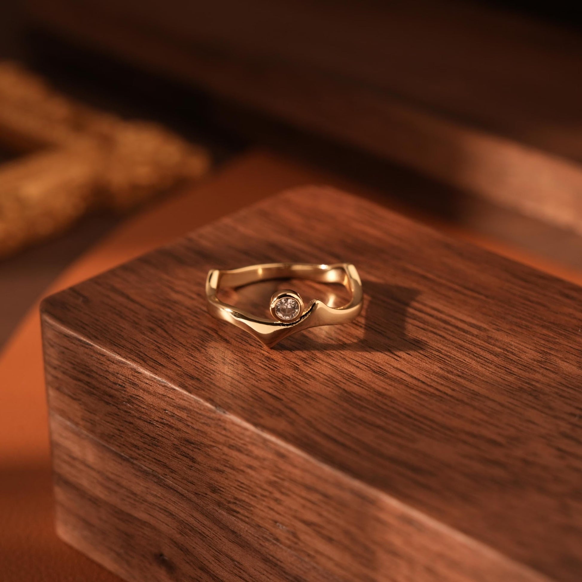 Round Cut Diamond Wave Irregular Gold Ring Gift for Her