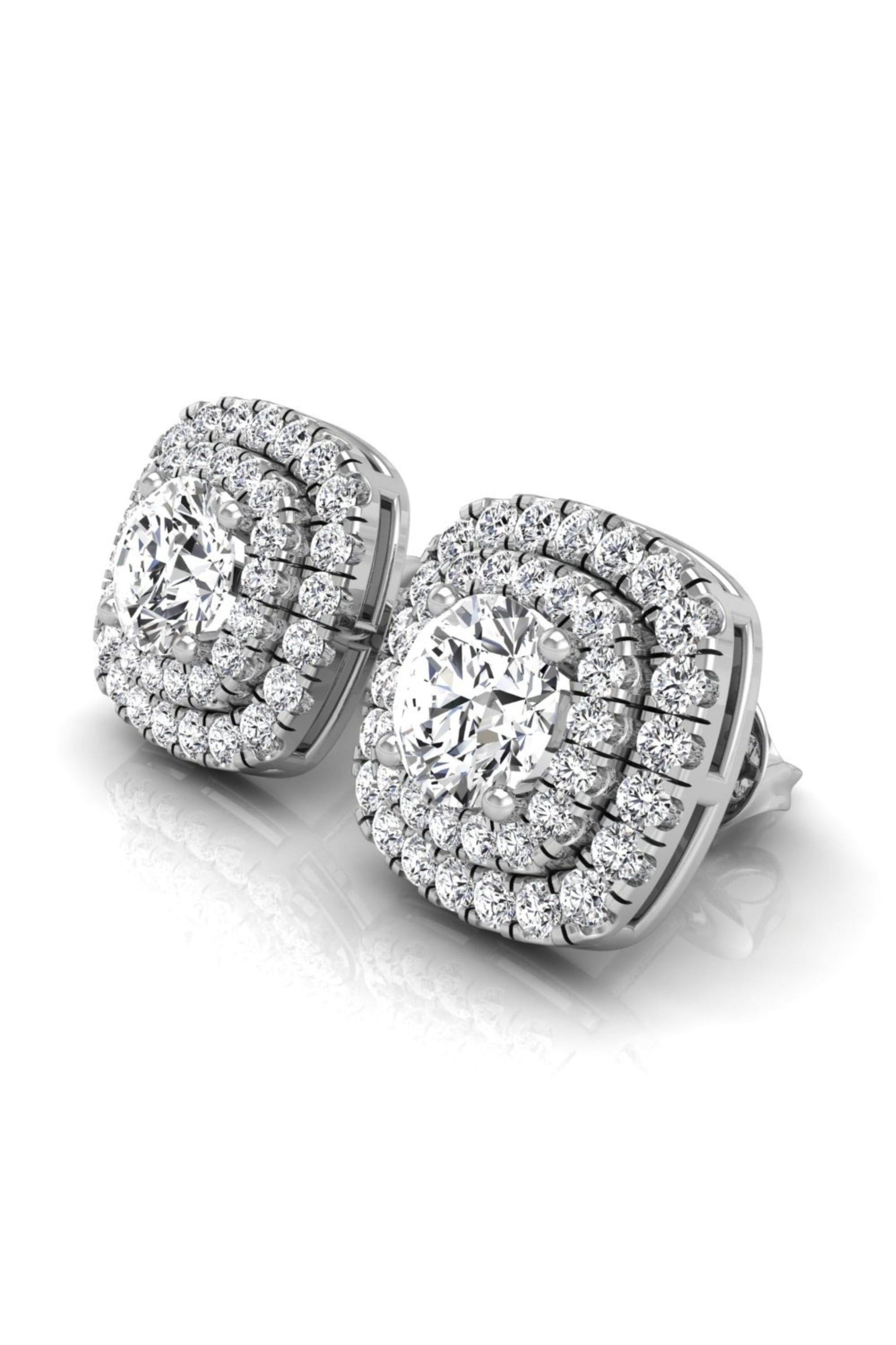 Round Cut Double Halo Moissanite Diamond Earrings for Women