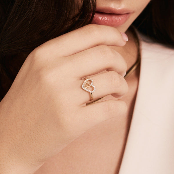 Round Cut Double Heart Diamond Ring for Her