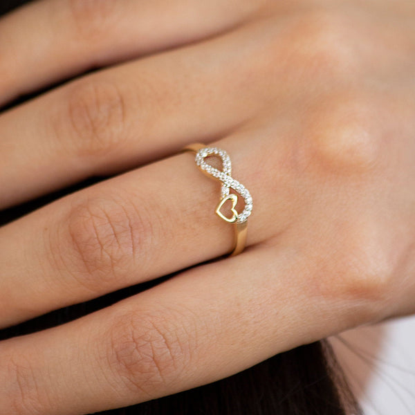 Round Cut Heart Detailed Infinity Diamond Ring Valentine Gift