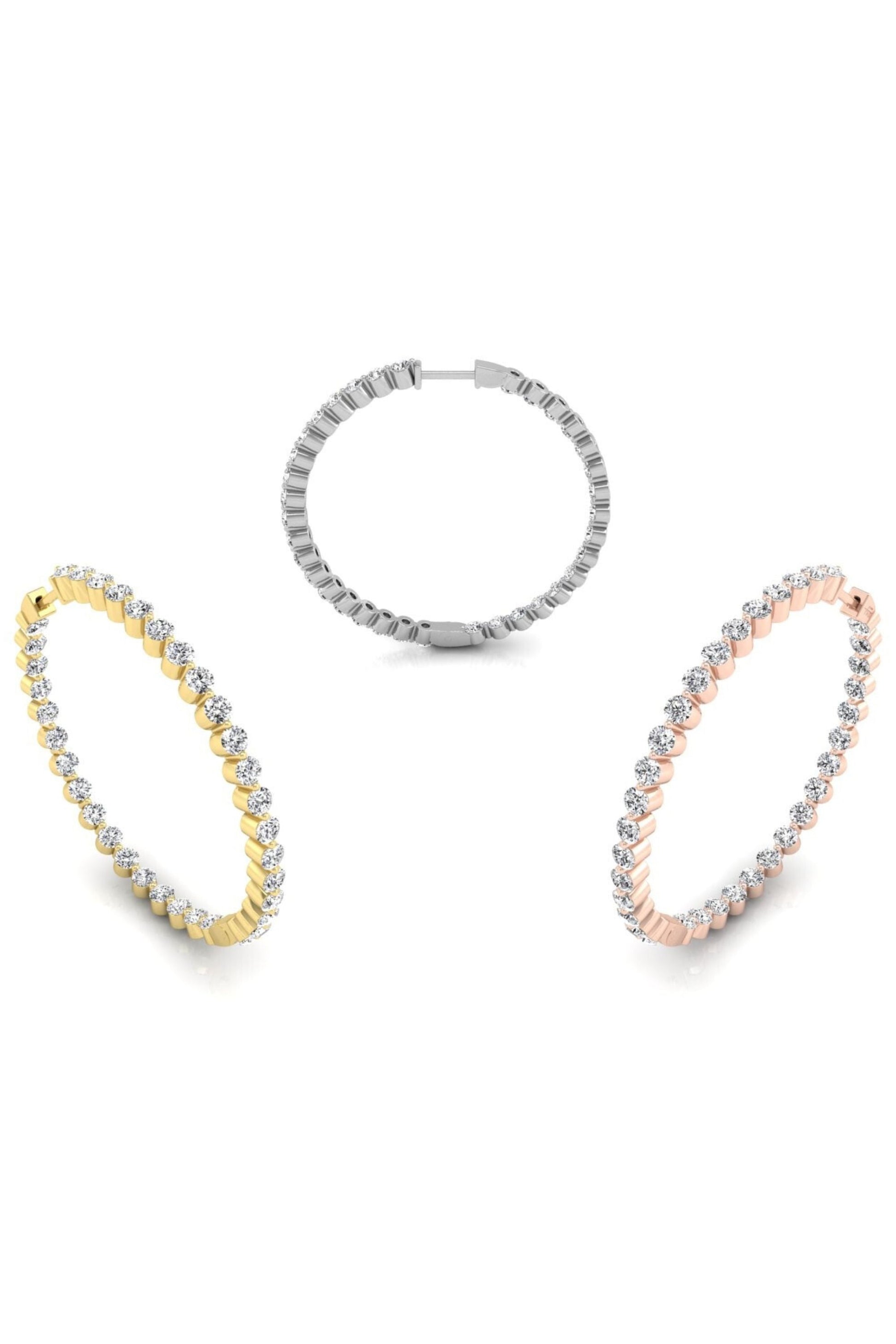 ✥ Introducing our Round Cut Hoops Moissanite Diamond Earrings for Her, a captivating blend of classic style and modern allure. Crafted to perfection, each earring features a sleek hoop design adorned with brilliant round-cut moissanite diamonds, exuding timeless elegance and sophistication. The sparkling moissanite stones add a touch of glamour to any ensemble, while the hoop silhouette offers versatility for both casual and formal occasions. Whether paired with a cocktail dress for a night out or styled with jeans and a blouse for daytime chic, these exquisite diamond earrings are sure to elevate your look with their irresistible charm and undeniable beauty. Treat yourself to the luxury of these stunning moissanite diamond hoop earrings and shine bright with every wear.
