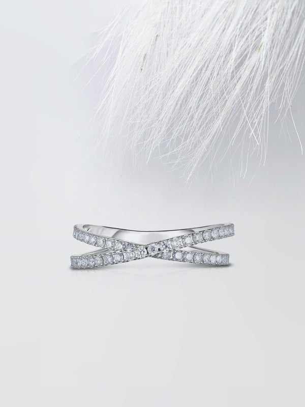 Round Cut Moissanite Criss-Cross Diamond Wedding Band for Her