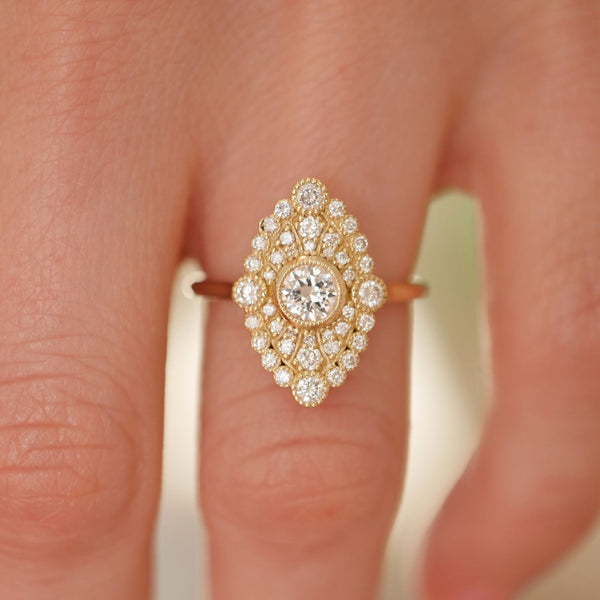 Round Cut Moissanite Diamond Vintage Milgrain Engagement Ring