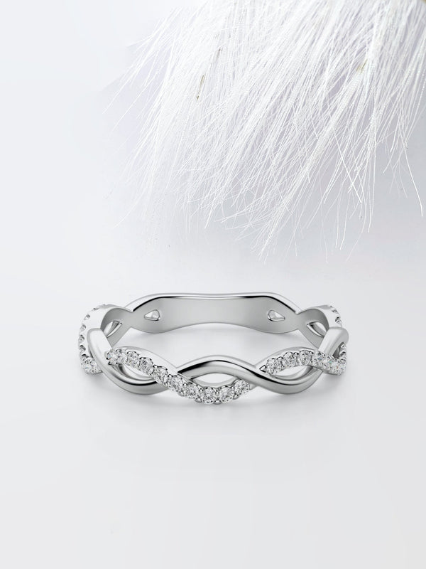 Round Cut Moissanite Infinity Diamond Wedding Band in White Gold