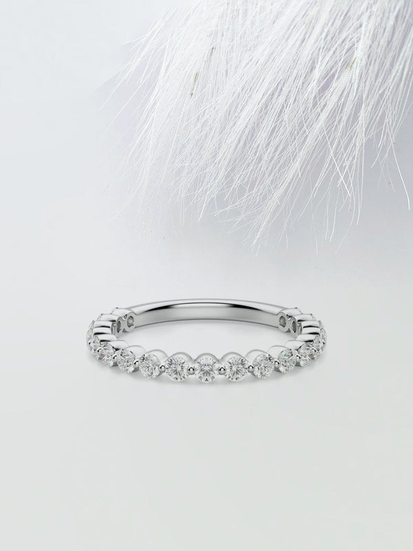 Round Cut Moissanite Shared Prong Diamond Wedding Band in Gold