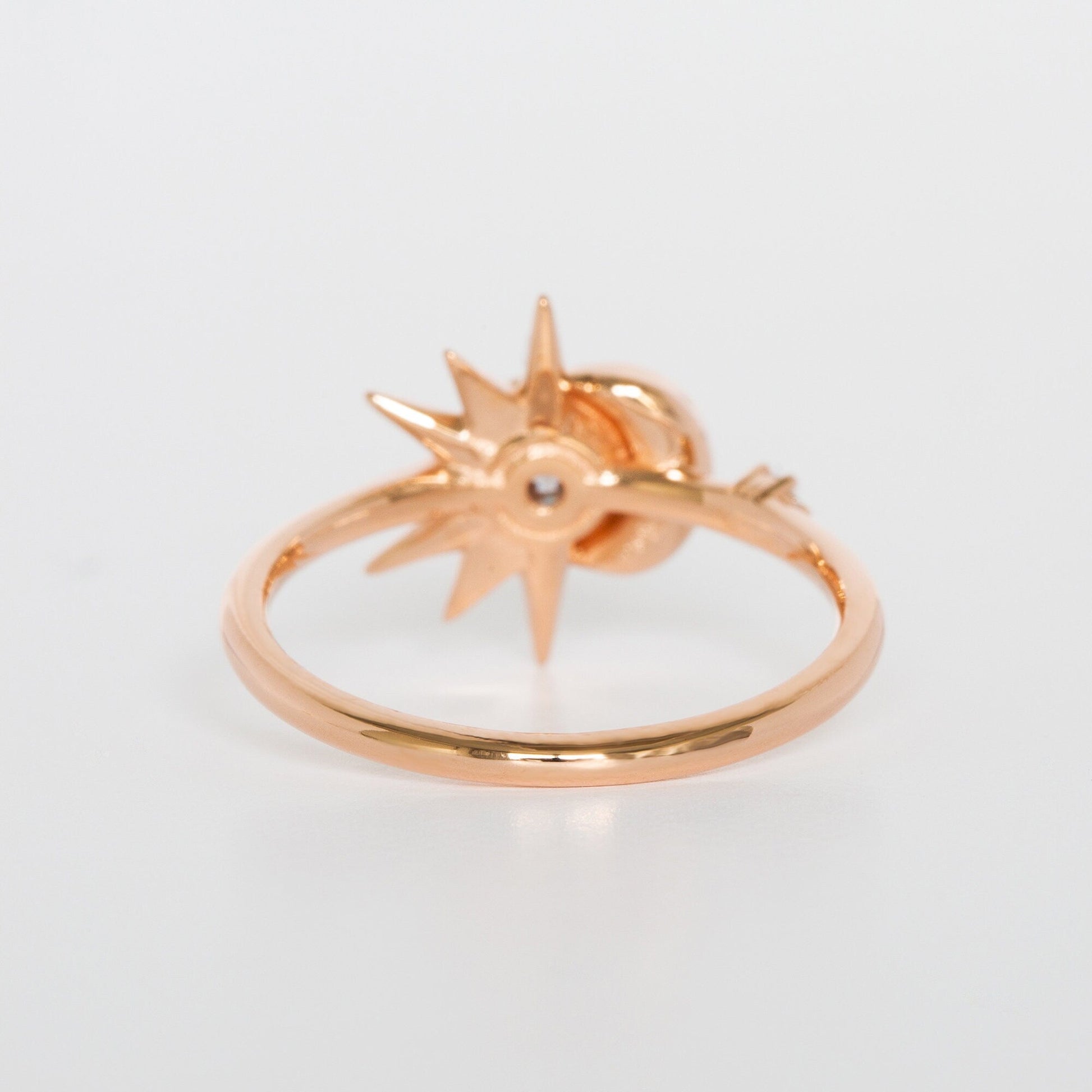 Round Moissanite Diamond Sun & Crescent Moon Engagement Ring In Solid Gold