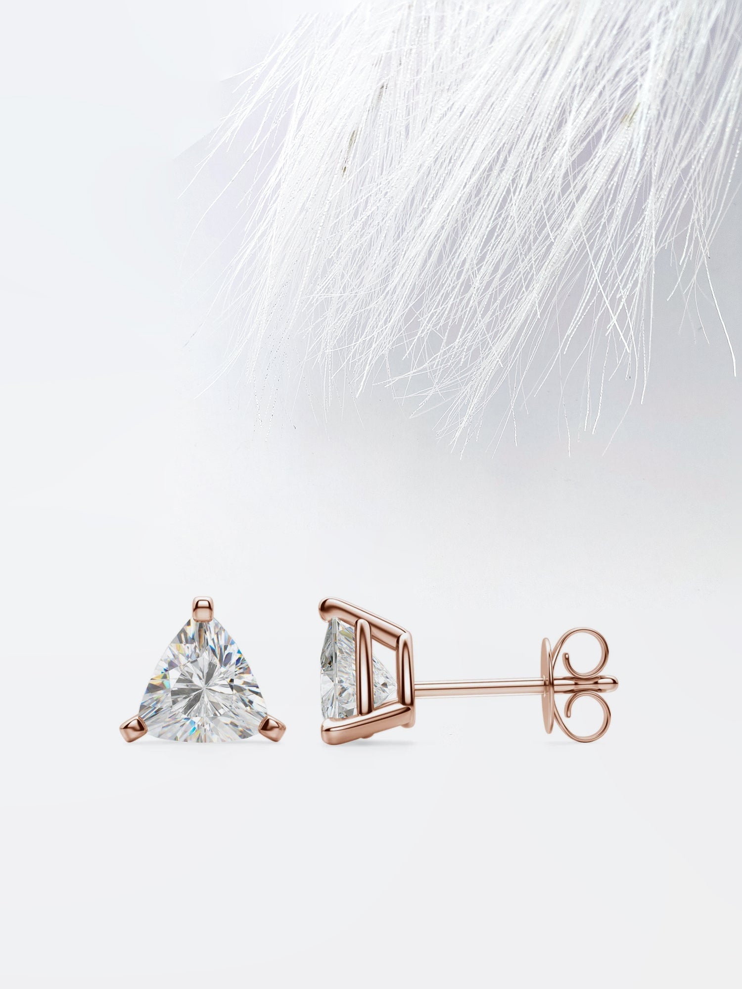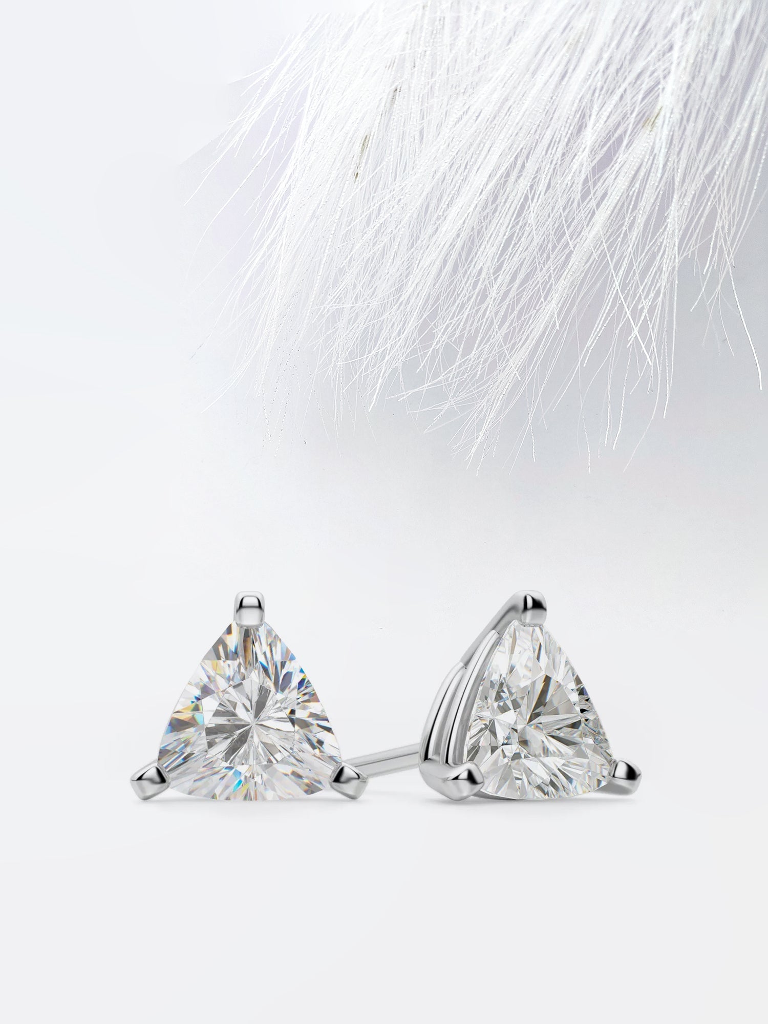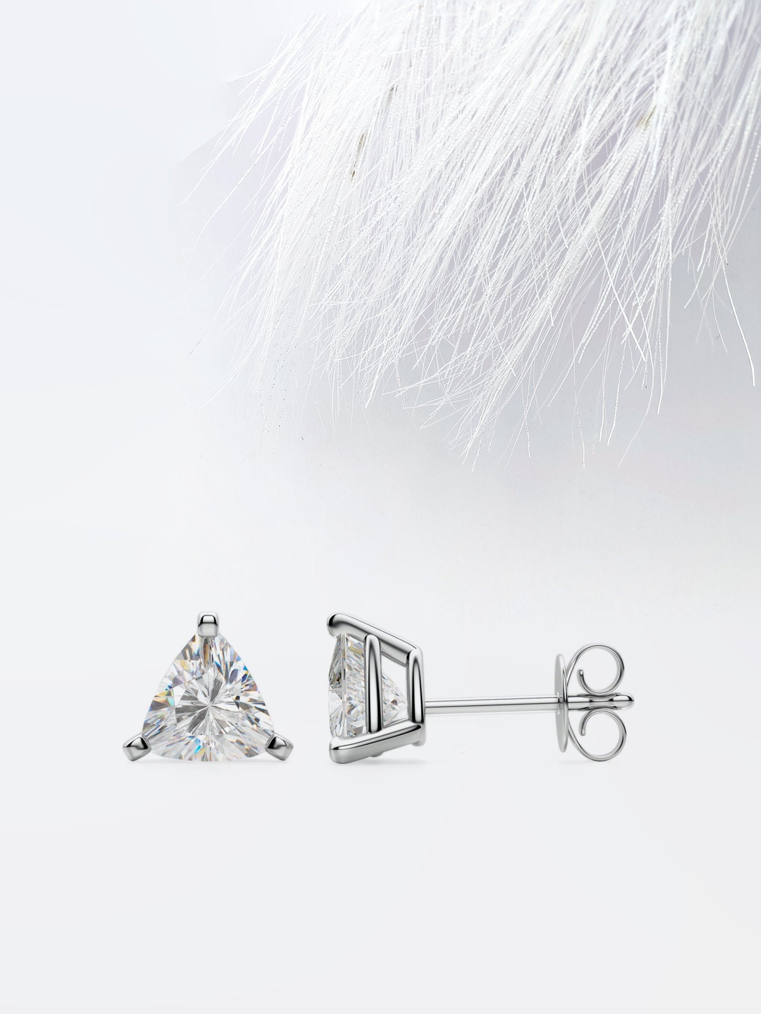✥ Add a touch of modern elegance to your look with these Trillian Cut Moissanite Diamond Stud Earrings in 14K White Gold. Featuring a unique trillian-cut moissanite diamond set in lustrous 14K white gold, these earrings are perfect for both casual and formal occasions. The crisp, geometric shape of the trillian cut adds a contemporary flair to these classic studs, making them a versatile addition to your jewelry collection. Whether you're dressing up for a night out or adding a touch of sparkle to your everyday attire, these Trillian Cut Moissanite Diamond Stud Earrings are sure to dazzle.
