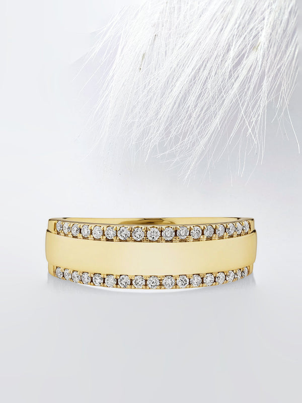Two Row Moissanite Wedding Band with 0.37ct of Diamonds In Yellow Gold