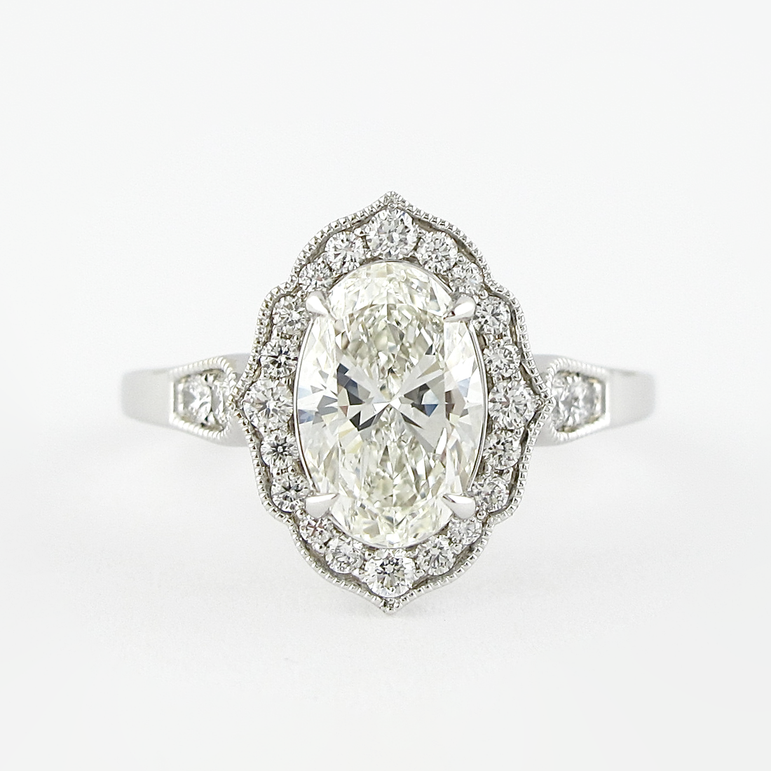 1.91CT Oval Cut Moissanite Vintage Halo Engagement Ring